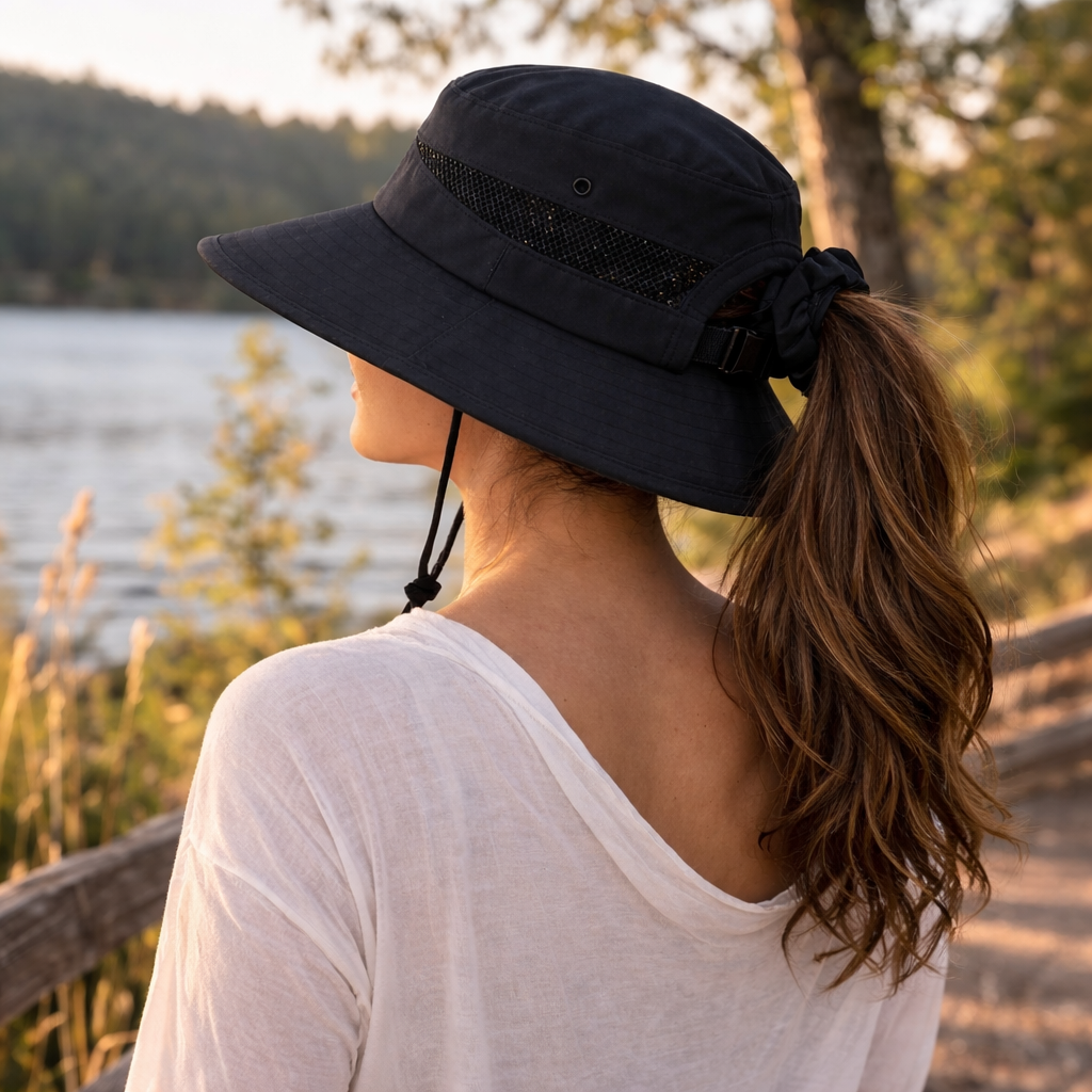 Kiss My Ponytail Unisex Wide Brim hats allow you to wear your hair in a messy bun or ponytail and still wear your cap comfortably without ruining your hairstyle! The...