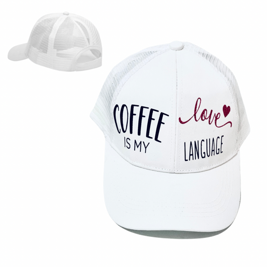 COFFEE ☕️ IS MY LOVE 💛 LANGUAGE Ponytail Cap