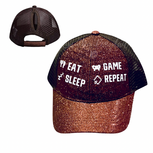 EAT, SLEEP 😴, GAME, REPEAT Ponytail Cap