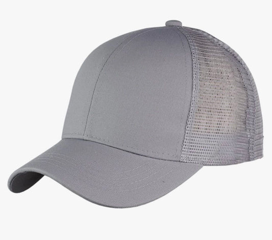 Grey Plain Ponytail Cap
