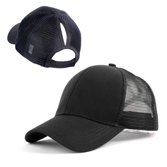Now you can have both! Our Plain Ponytail Cap is perfect for those who want a mix of practicality and fashion.
