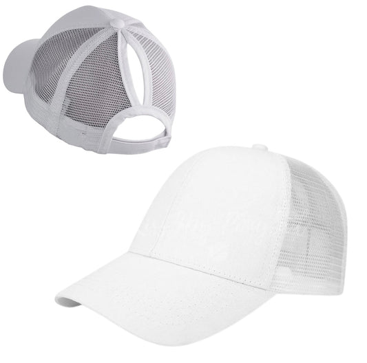 WHITE Plain Ponytail Cap