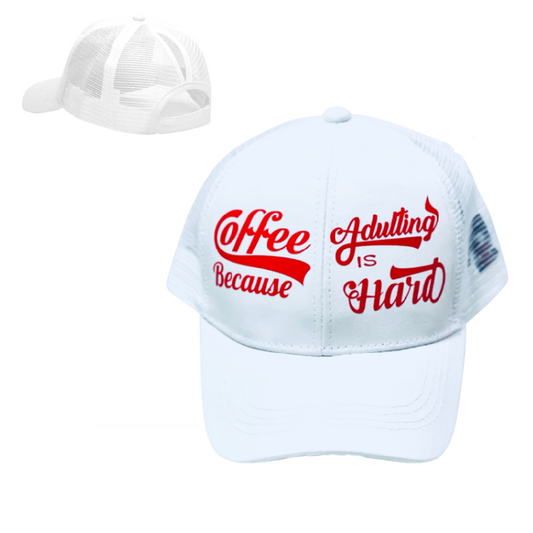 COFFEE ☕️ BECAUSE ADULTING IS HARD Ponytail Cap