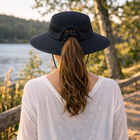 Say goodbye to sacrificing style for comfort – our hats feature a unique ponytail hole, allowing you to rock your messy bun or ponytail while keeping cool and shaded. Whether you're hitting the beach, camping, or simply enjoying outdoor activities, our adjustable, foldable, and lightweight hats are the perfect companion.