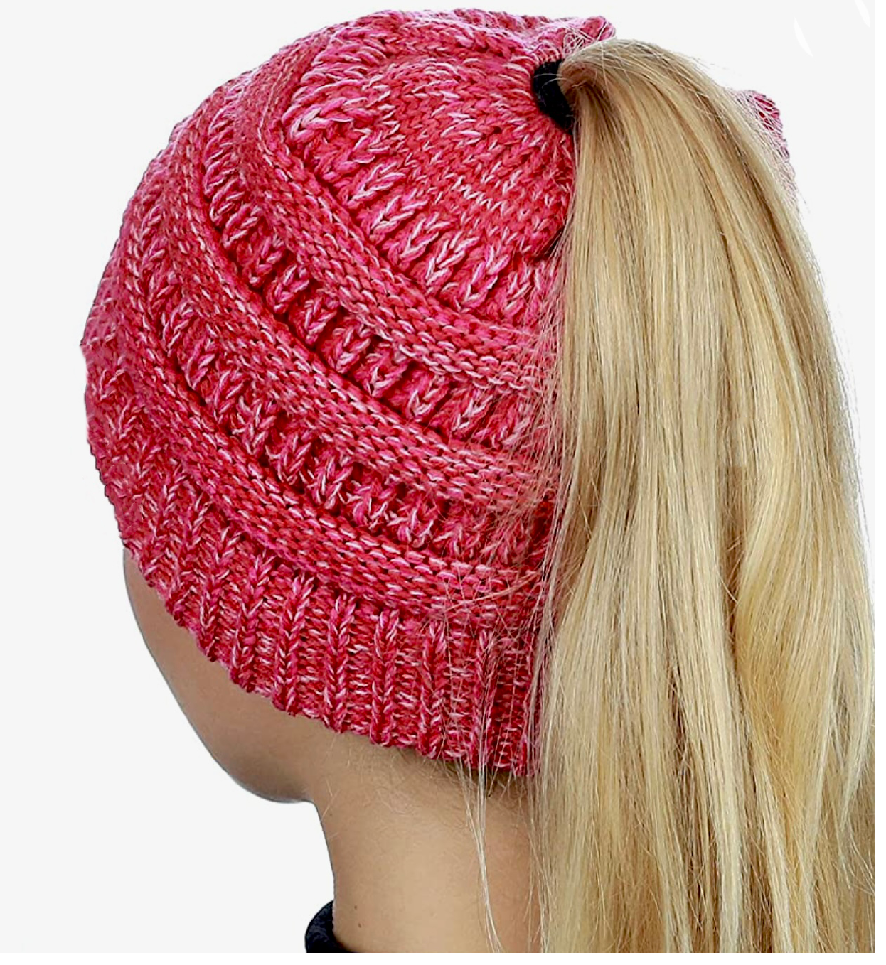 This beanie boasts a special ponytail slot that allows you to wear your hair in a messy bun or ponytail without ruining your hair.