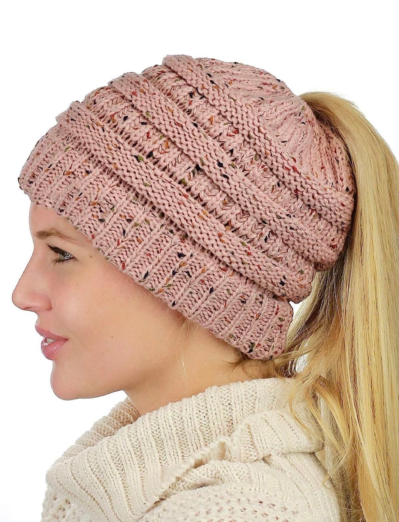 This beanie boasts a special ponytail slot that allows you to wear your hair in a messy bun or ponytail without ruining your hair.